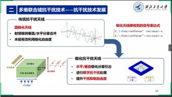 卫星导航抗干扰技术业已成为卫星导航终端正常工作的必要保障。针对这一领域,王伶教授向与会者分享了主题为“卫星导航抗干扰技术与应用”的报告。王教授首先介绍了卫星导航抗干扰应用背景,国内外干扰抑制、定位及识别的发展态势和面临的问题,并对新一代多维联合域抗干扰技术原理、优势和具体应用进行了生动细致地阐述。面对干扰位置和样式识别目前存在的重难点问题,王教授结合自己的工作经验及团队研究成果,给出了相应的解决措施。最后,王教授对卫星导航抗干扰技术和应用的未来发展趋势进行高屋建瓴的展望。