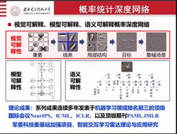 针对“深度网络”这一热点领域,陈渤教授在“概率统计深度网络——提高深度网络可解释性”报告中指出, 现有深度学习技术依赖海量数据进行学习训练,处理小样本问题比较困难,并且“黑匣子”问题较为严重,阻碍了其在实际设备中的应用。陈教授针对以上问题进行了详实的分析与解释,并展示了其所在团队在可解释的概率统计深度学习理论与方法方面的研究进展。