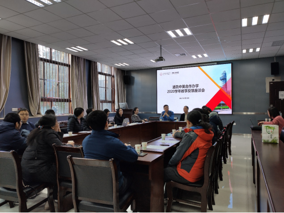 随后,各位任课教师对本学年教学情况进行交流,探讨中英班培养方案的优势劣势、存在的问题、改进建议,就学生知识掌握程度、学生英语水平能力、学习学风、及中英双方课程设置等方面进行了总结。在场的老师们还互相交流了教学方法、分享遇到的问题和解决方法、课堂教学管理等方面的经验。顾院长对任课教师的工作热情,专业水平给予高度评价,同时也希望老师们在教学工作中多提宝贵意见,为学院发展积极建言。对于教师上课所遇到的困难例如实验设备损坏如何处理、学生的排课过于密集影响教学效果等,中英办公室表示会积极配合协助教师解决此类问题。顾院长表示中英班应因材施教,根据学生的特点对课程进行针对性调整,并重点关注课程建设,持续开展高质量合作办学。