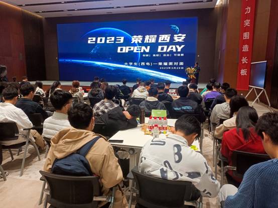荣耀公司相关负责人对通院师生的到来表示热烈欢迎并对公司的发展以及西安研发基地情况作了详细介绍。公司通信技术专家以“通信技术互联分享”为题,为同学们展示讲解了通信互联技术的发展历程以及研究热点,并对公司在尖端通信产品领域所取得的成果和未来的发展方向进行了介绍。