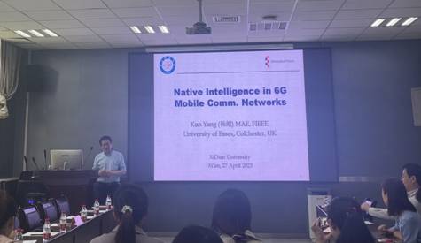 在4月27日上午于主楼II区219报告厅举办“创新进取,学术之春”系列学术交流活动。本次活动邀请到欧洲科学院(Academia Europaea)院士MAE,IEEE Fellow, IET Fellow, ACM杰出科学家杨鲲教授做作了题为《6G移动通信网络中的内生智能》的专题报告。近50名师生参与,学院副院长李长乐出席并主持了本次活动。