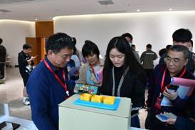 各位专家评委们认真听取了各小组的成果介绍,并就产品的设计理念、创新点以及市场方面的性价比、营销点等问题进行提问。现场互动气氛浓郁,展演同学积极向在场专家对作品进行展示,并邀请老师亲身体验自己的作品。