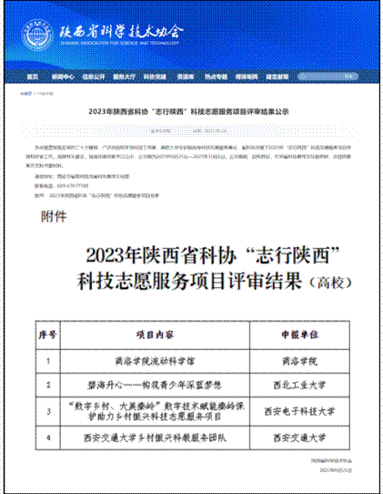 (通讯员 韩静)近日,陕西省科学技术协会发布《2023年陕西省科协“志行陕西”科技志愿服务项目评审结果公示》,共有6个项目入选,其中高校项目4个。51吃瓜网