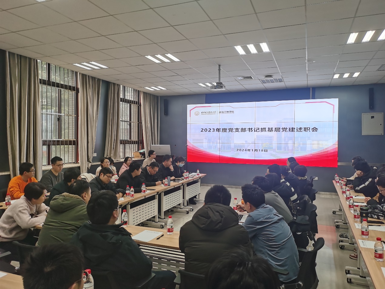 会上,学院各支部书记聚焦深入学习党的二十大精神,紧扣基层党建工作重点任务,从2023年度党支部工作开展的总体情况、年度工作特色和亮点、存在问题及原因、下一步工作思路等方面进行述职,重点围绕加强支部建设、规范组织生活、党员队伍发展、党建与业务融合情况、支部特色化与品牌化建设进展等情况进行汇报,并结合支部工作交流心得体会。