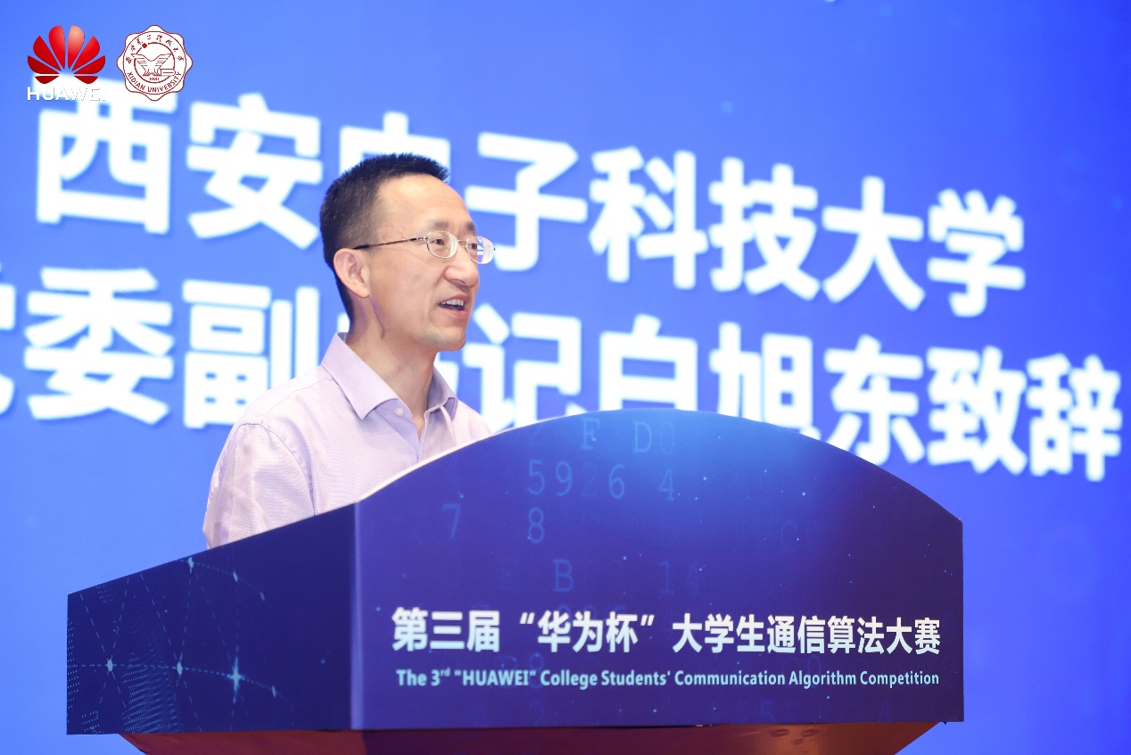 白旭东在致辞中对华为公司在学校建设和人才培养工作中的长期支持表示感谢。他强调,在当今科技飞速发展的时代,通信技术作为推动社会进步的重要力量,其核心和基础在于通信算法。白旭东指出,西电与华为的战略合作在多个领域取得了丰硕成果,期待通过“华为杯”通信算法大赛,进一步拉近高校与行业的距离,强化学生的实验实践和创新创业能力。希望大赛继续高标准、高质量推进,不断提升国际影响力,成为校企合作、产教融合的新范式,期待西电与华为的合作结出更多丰硕成果。