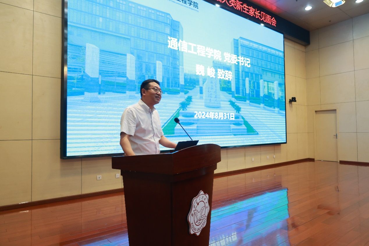 ,帮助学生及家长了解学院情况,加强家校沟通,形成育人合力,助力学生成长成才。按照学校部署,学院积极响应,精心筹备,8月31日下午,学院2024级通信大类新生家长见面会在南校区行政楼210报告厅举行,学院党委书记魏峻、执行院长李云松,教学相关老师及2024级辅导员参与本次见面会,见面会由学院党委副书记沈强主持。