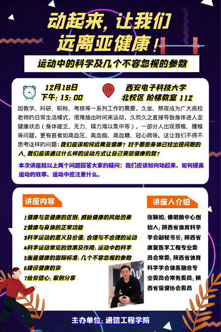 讲座名称:动起来,让我们远离亚健康——运动中的科学及几个不容忽视的参数