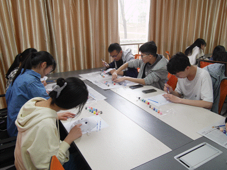 首期活动以“戏曲”为主题,选取戏曲舞台上特征鲜明的脸谱为切入点。从脸谱是什么、脸谱的起源开始,以讲授加讨论的形式激发学生兴趣点,同学们选取自己感兴趣的人物,了解其生平事迹与大家分享,从中体会不同颜色脸谱的象征意义及其代表人物。随后老师带领大家进行脸谱赏析,通过经典影视作品、大量脸谱成品图像、戏曲舞台剧照等内容,让同学们通过“观感”对脸谱的结构、元素、颜色有了更深刻的认知,为后期着手绘制奠定基础。