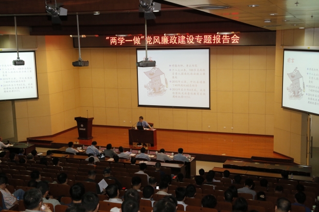5月18日下午,西安电子科技大学“两学一做” 党风廉政建设专题报告会在南校区举行,陕西省人民检察院培训中心主任冯耀辉为我校党员干部作预防职务犯罪专题报告。报告会由党委书记陈治亚同志主持。